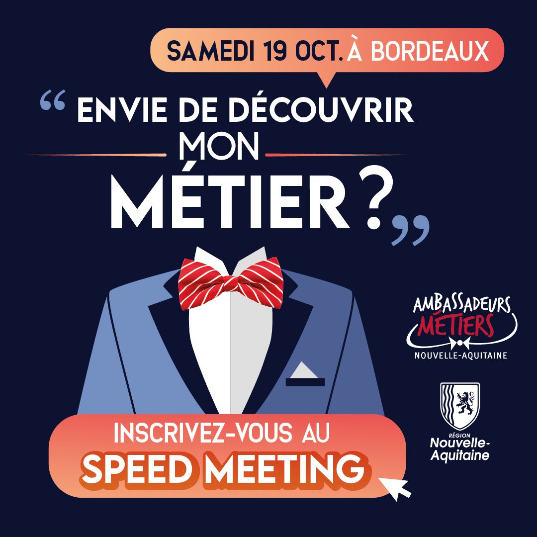 Le samedi 19 octobre, pendant les Olympiades des Métiers, le réseau Ambassadeurs Métiers de la Région Nouvelle-Aquitaine organise un grand Speed Meeting au Parc des Expositions de Bordeaux.